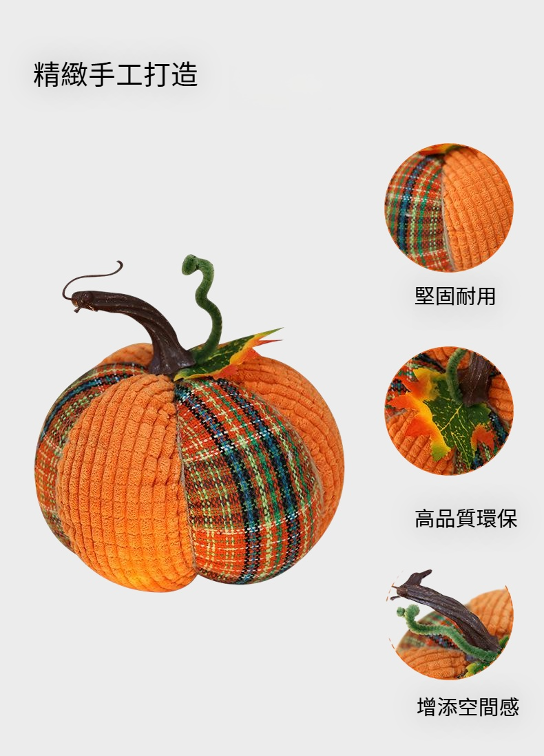 ● 精緻手工打造南瓜擺件,色彩鮮豔亮麗,為居家空間增添溫馨秋意與節慶氛圍,提升生活質感。